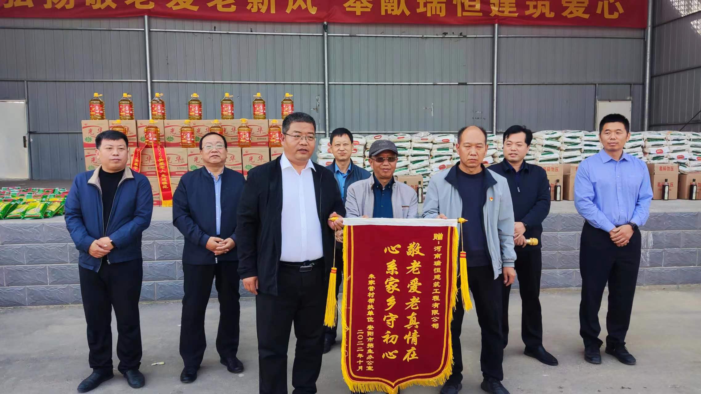 高莊鎮(zhèn)黨委書記王德勇和鎮(zhèn)長郭威代表村兩委向瑞恒公司頒發(fā)了敬老牌匾。朱家營村幫扶單位安陽市招生辦公室副主任于重生向瑞恒公司頒發(fā)了敬老錦旗。